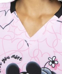 There’s simply nothing sweeter than the Mickey and Minnie print on the Infinity by Cherokee Women’s I Love You More Print Scrub Top. This Valentine’s Day-ready scrub top is perfect for pediatric settings.