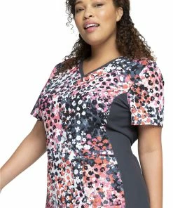 Ribbed sides add comfort and style to the iflex by Cherokee Women’s Knit Panel Blooming Cheetah Print Scrub Top. The contrasting details make this scrub top incredibly flattering.