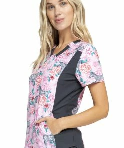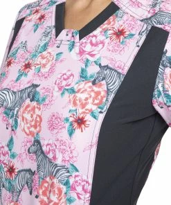 Add some sweetness to your busy day with the soft pink shades of the iflex by Cherokee Women’s Knit Panel Soft Safari Print Scrub Top. The fun zebra print and stretchy side panels make this scrub top one you’ll look forward to wearing.