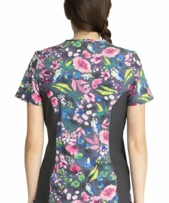 Give your work look an artful twist with the iflex by Cherokee Women’s Mock Wrap Watercolor Petals Print Scrub Top. The mock wrap neckline is flattering and feminine, while the stretchy side panels add athletic-inspired comfort.