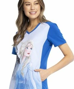 Join Anna and Elsa on a wintertime adventure in the Tooniforms by Cherokee Women’s Mythic Journey Print Scrub Top. These two sisters make for the perfect Frozen print scrub top.