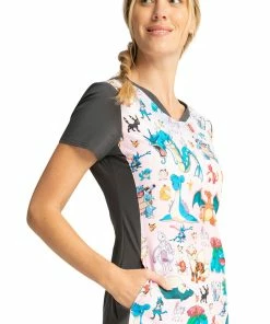 You’re sure to catch ’em all when you sport the Tooniforms by Cherokee Women’s Pokemon Party Print Scrub Top. This fun scrub top is sure to be a hit in pediatric settings – kids will love seeking out their favorite Pokemon.