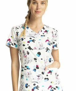 Patients of all ages will love “spotting” the puppies on the Tooniforms by Cherokee Women’s Spots Print Scrub Top. This playful top gives you a flattering silhouette, plus roomy front pockets for your gear.