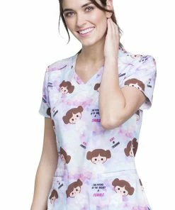Try a new spin on a favorite uniform with this Tooniforms by Cherokee Women’s V-Neck Star Wars Print Scrub Top. This feminine motif is complemented by an updated silhouette.