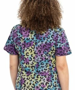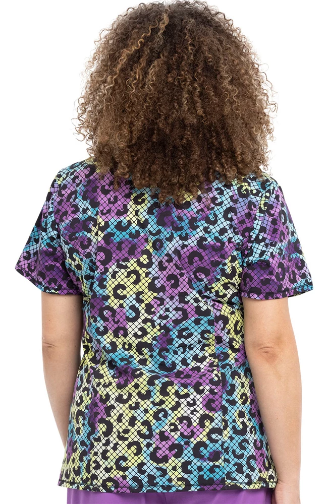 Express yourself with the Infinity by Cherokee Women’s Wild Mesh Print Scrub Top. Bright tie dye colors and cheetah print blend seamlessly.