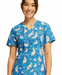 The Fashion Prints by Cherokee Women’s Care Like No Otter Print Scrub Top is the cutest scrub top you’ll ever own. Plus, it’s made with pockets for storage, side vents for movement, and a slimming silhouette.