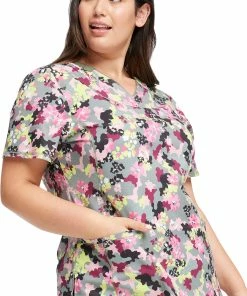 Add trendsetting style to your uniform with the Infinity by Cherokee Women’s Floral Camotion Print Scrub Top. The edgy print and figure-flattering seamed details make this top a favorite.