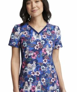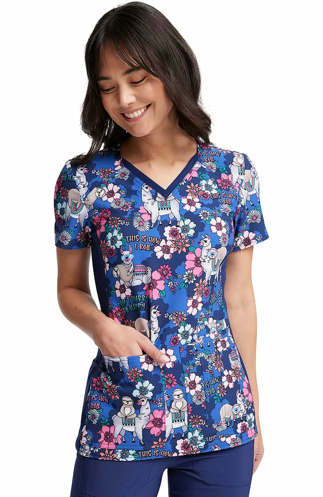 Feel the positive vibes in the iflex by Cherokee Women’s Happy Pals Print Scrub Top. Stretchy knit side panels add extra comfort and movement, while several front pockets add the utility you need.