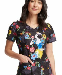 Exude kindness and optimism when you wear the Snow White-themed Tooniforms by Cherokee Women’s Just One Apple Print Scrub Top. Three pockets complete the look of this top featuring the very first Disney princess.