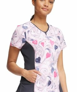 Wear your heart on your scrubs in the iflex by Cherokee Women’s Loving Swirls Print Scrub Top. Contrast pewter knit side panels make this sweet and sporty top so comfortable and fun to wear.