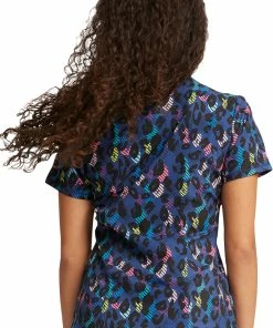 Add a touch of wild style to your look with the Infinity by Cherokee Women’s Mock Wrap Animal Pop Print Scrub Top. With a stretchy rib knit back panel and a unique neckline, this top is both flattering and fun to wear.