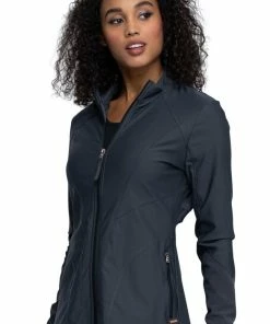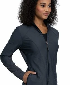 Take your look to the next level with the stunning FORM by Cherokee Women’s Zip Front Scrub Jacket. This functional, stylish scrub jacket features racerback mesh paneling, contoured seaming and a stylish stretch fabric.