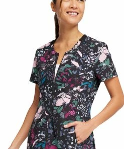 Dark, moody florals add a romantic vibe to the Infinity by Cherokee Women’s Zip-Front Wild Fleur You Print Scrub Top. This irresistibly unique top has a full zip-front closure, plus two front pockets for your must haves.