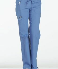 Cherokee Workwear Core Stretch scrubs have features that make them fashionable and ensure their durability. For example, these drawstring scrub pants have a back leg seam and double needle top stitching. In addition to the functional drawstring, these scrub pants have a comfortable knit waistband with encased elastic. There are lots of pockets, including two patch pockets. The cargo pocket on the right leg has several sections so you can comfortably carry all your tools. There are also two back patch pockets. The inseam is 31″. The fabric is a poly/spandex poplin.