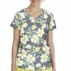 This round neck scrub top by Cherokee Workwear Originals features a collar notch highlighted with decorative stitching. The neck yoke is raglan shaped. Back elastic and side vents make for a comfortable and flattering fit.