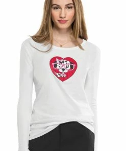 A simply adorable dog is the highlight of this comfortable long sleeve crew neck knit underscrub from Cherokee Workwear Originals. The 4737 underscrub features a screenprinted heart around an adorable puppy sporting eyeglasses. The theme is repeated on the lower left sleeve. The fabric is a soft cotton stretch.