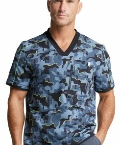 Keep your cool under pressure in the Dynamix by Dickies Men’s Tough Glowing Print Scrub Top. Neon lime details add an energetic touch to this unique scrub top.