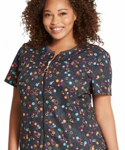 The Dynamix by Dickies Women’s Dots So Bright Print Scrub Top allows for both stye and comfort. The colorful geometric print and adjustable front zipper closure give you the best of both worlds.