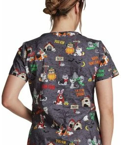 Look scary-good in the EDS Signature by Dickies Women’s Howl-Oween Friends Print Scrub Top. This chic, Halloween and fall holiday print is sure to make you smile.
