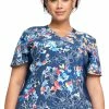 Vibrant florals add chic contrast to the Dynamix by Dickies Women’s Light Bright Blooms Print Scrub Top. The textured black grid background gives this unique scrub top its modern edge.