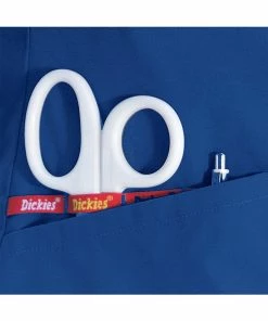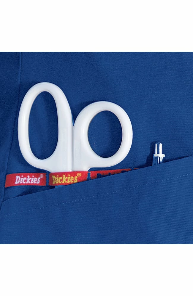 The 86806 mock wrap scrub top has an empire waist and front patch pockets with angled openings. There’s also an instrument loop on the right pocket and a flexibly knit interior pocket. This top from Dickies EDS Signature collection has side vents. Center back length: 25″”.