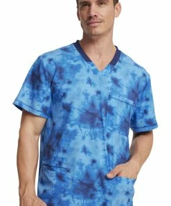 Oozing with style, the Dynamix by Dickies Men’s Tonal Tie Dye Navy Print Scrub Top takes your professional look to the next level. It’s also fully functional, with pockets for storage, side vents for movement, and a comfortable stretch neckline.