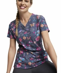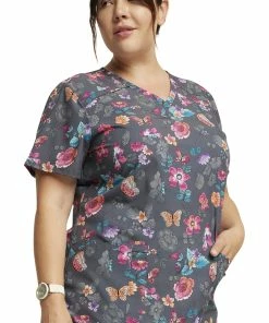 Understated and feminine, the EDS Signature by Dickies Women’s Butterflies Abloom Print Scrub Top has tons of storage options for your on-the-go needs. Plus, it’s designed with a flattering silhouette that’ll compliment your favorite scrub pants.
