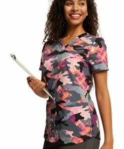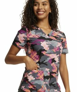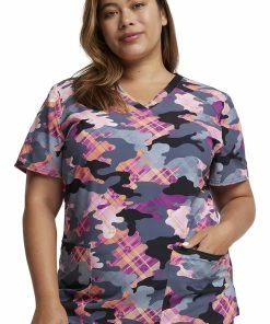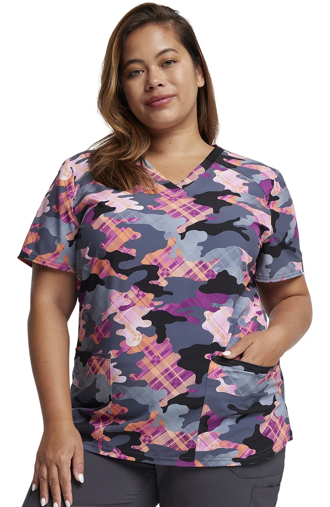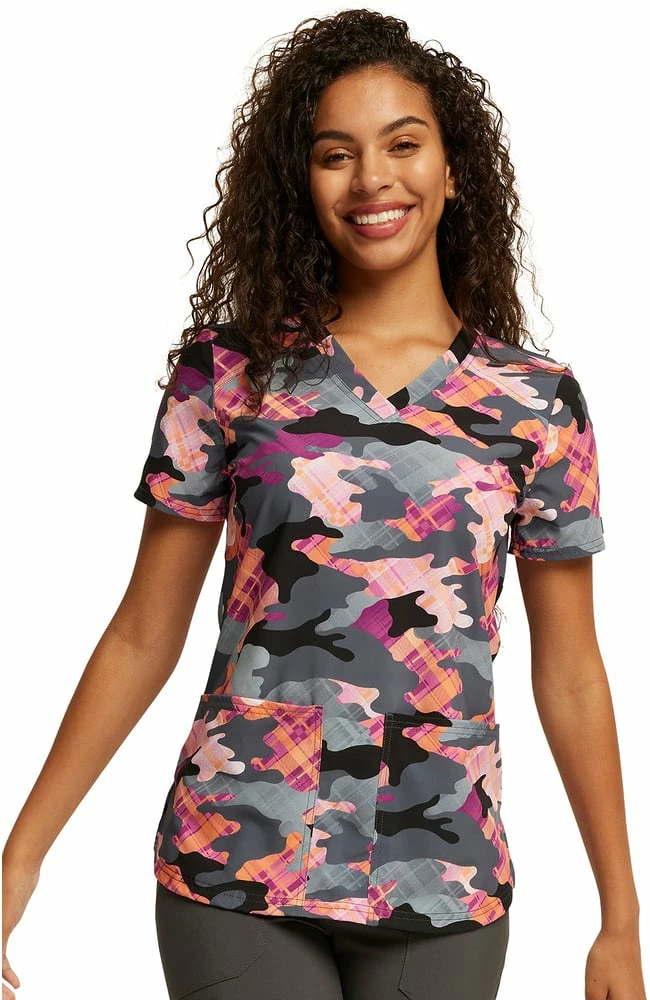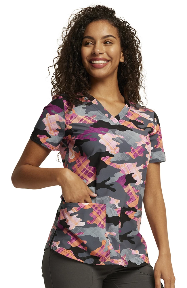 Don’t just blend in, stand out in the EDS Signature by Dickies Women’s Camo Plaid Print Scrub Top. This eye-catching, hard-working scrub top is made with performance-enhancing details like a rib knit neckline, patch pockets, and curved hemline for extra comfort and coverage.
