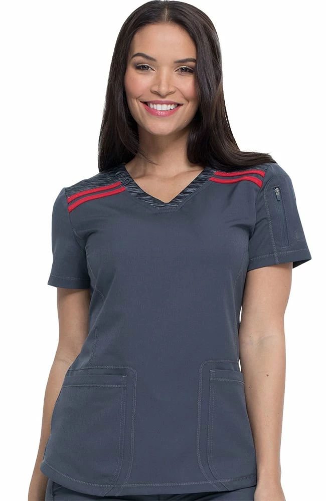 Space dyed panels add detail to the Dynamix by Dickies Women’s V-Neck Solid Scrub Top. Stay within your uniform guidelines and show some personality.