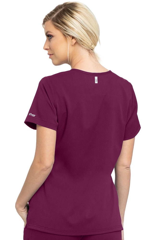 Enjoy the signature stretch fabric of the Spandex Stretch by Grey’s Anatomy Women’s Bree Tuck-In Solid Scrub Top. The medical scrub uniforms you have come to count on are now available in a tuck-in friendly style, to reduce excess bulk.