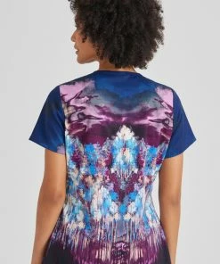 Prepare for compliments when you wear the artful Grey’s Anatomy Classic Women’s Midnight Wonders Print Scrub Top. With shades of indigo and ciel, it’s easy to match back to your classic blue scrub pants.