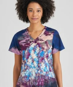 Prepare for compliments when you wear the artful Grey’s Anatomy Classic Women’s Midnight Wonders Print Scrub Top. With shades of indigo and ciel, it’s easy to match back to your classic blue scrub pants.