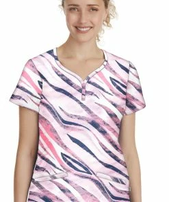 You’ll love the luxe comfort and vibrant print of the Women’s Isabel Scrub Top from Purple Label by Healing Hands. With decorative buttons and convenient pockets, this stretchy printed scrub top is sure to become a new favorite.