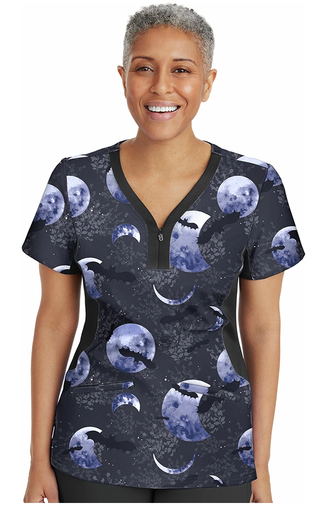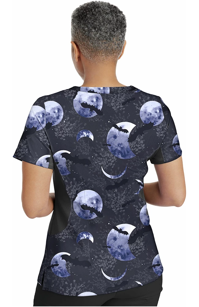 Subtle meets spooky in the Purple Label by Healing Hands Women’s Jessi Y-Neck Wicked Moon Print Scrub Top. With shadowy, easy-to match shades and ultra-flattering stretchy side panels, this top is a fun and festive favorite.