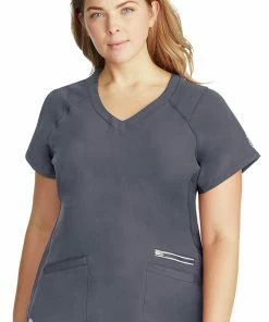 Textured panels and an extra zip pocket give the HH360° by Healing Hands Women’s Serena V-Neck Solid Scrub Top an athletic look. This updated fabric goes the distance with easy care that won’t shrink or fade.