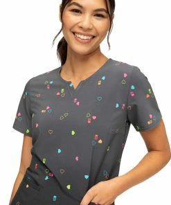 A fashion-forward print makes the Break On Through by heartsoul Women’s Pineapple Pop Print Scrub Top an easy favorite. The unique neckline and ombre background bring a bit of edge to this playful scrub top.