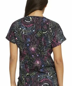 Aim for the stars in the Break On Through by heartsoul Women’s Round Neck Celestial Twist Print Scrub Top. A lace-up detail at the neckline adds a unique touch to this stylish scrub top.