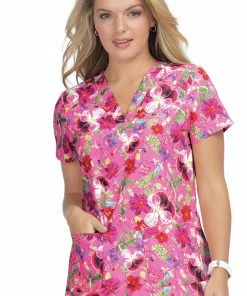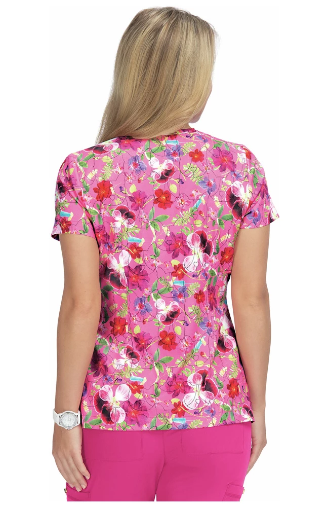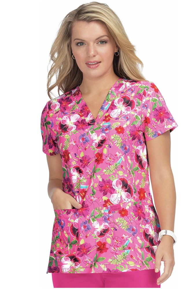 Make a stylish statement in the ultra-sweet Betsey Johnson by koi Women’s Bell Floral Garden Puppy Print Scrub Top. A subtle puppy design is layered with a vibrant floral print on this stretchy scrub top.