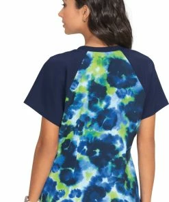 Go with the flow in the koi Lite Women’s Journey Cheetah Tie Dye Green Tea Print Scrub Top. This refreshing print scrub top blends together electric blue and green cheetah print with an aquatic tie dye texture.
