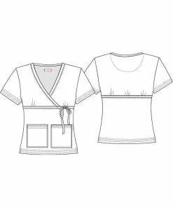 You will love this mock wrap scrub top from Koi. This mock wrap top features a drawstring waist that can be adjusted for the perfect fit, side slits and 2 deep front patch pockets. There are rows of topstitching at the pockets, sleeve hems and hem that add a touch of athletic styling. This scrub top flatters your body and makes you feel great. Center back length 25″.
