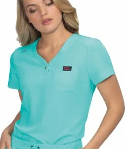 You’ll love the sweetness and simplicity of the Women’s Rosemary Solid Scrub Top from Betsey Johnson by koi, with its heart-shaped snap adorning the neckline.
