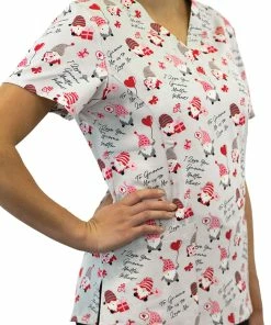 You’re sure to see smiles when you wear the Maevn Uniforms Women’s Gnome Matter What Print Scrub Top. The text on the print says “I Love You Gnome Matter What” and “To Gnome Me is to Love Me”