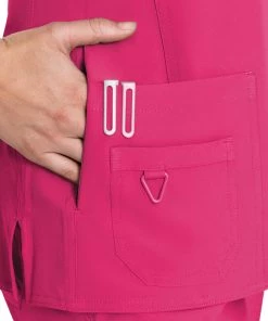 A back knit panel boosts the sporty look and feel of this Activate by Med Couture Women’s Refined V-Neck Solid Scrub Top. This 4-way stretch top features multiple pockets, including a zipper compartment to secure your most valuable items.