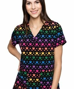 Love is all around when you’re wearing the Med Couture Originals Women’s Vicky Rainbow Heart Print Scrub Top. Two roomy pockets complete the look of this ultra-colorful scrub top.