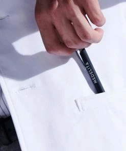 Precision tailoring takes the Medelita Men’s H W Cushing Lab Coat to new heights with improved mobility and stretch. This professional lab coat style allows you to move freely and stay organized on even the busiest of days, all while maintaining a professional, collected image.