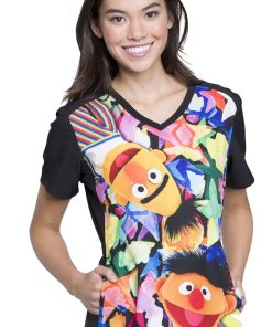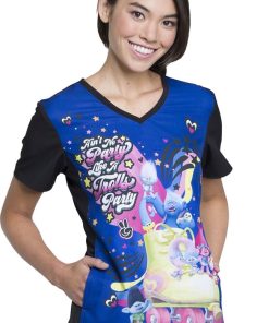 Cherokee Clearance Women’s V-Neck Knit Panel Trolls Print Scrub Top