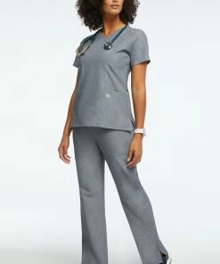 AllHeart Clearance Women’s Mock Wrap Solid Scrub Top & Elastic Waist Cargo Scrub Pant Set