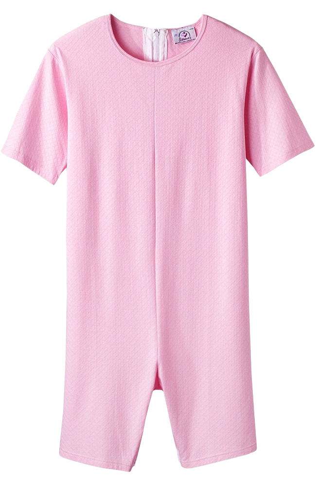 In a pretty pointelle knit, this comfortable dignity jumpsuit from Silverts was designed with strategically placed zippers to make changing easier for caregivers. The long back zipper also helps prevent undressing.