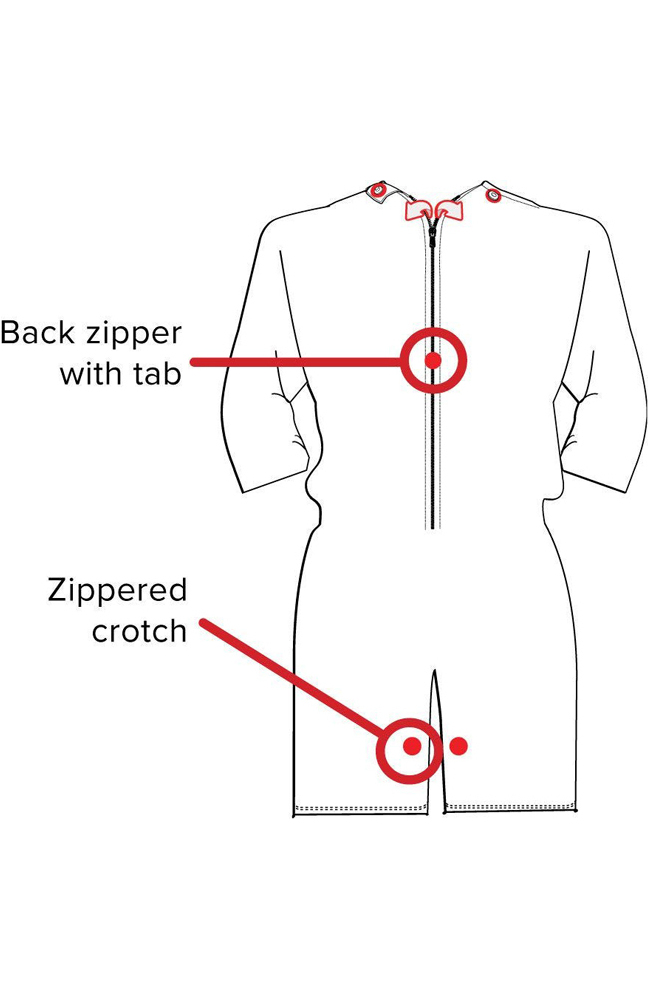 - Zipper and snaps at crotch for easy changing