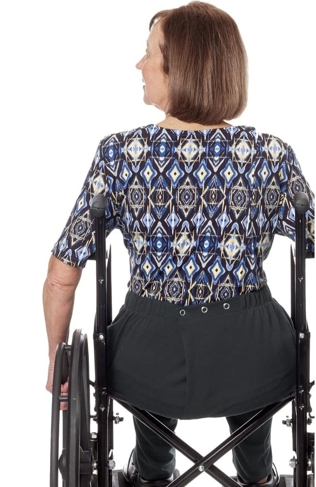 Overlapping back panels make these soft, stretchy adaptive ponte pants convenient for getting dressed from a wheelchair or seated position.
